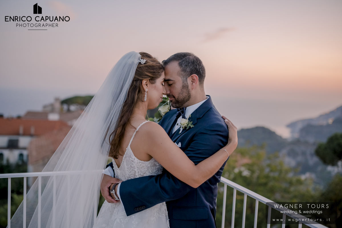 From Veronica: For those of you working with Mario Capuano and Annamaria Staiano, rest assured you are in excellent hands and they will do everything possible so that you have the wedding of your dreams.I stumbled upon Villa Eva on a Google search, which led me to Mario about a year before our wedding date. I was a bit hesitant at first about having our wedding planned by someone I had never met, but after some research, choosing Mario was a great decision. I sent him an initial contact email, which he almost immediately responded to with TONS of useful information. He sends separate emails for every aspect of the wedding, which can feel a bit overwhelming at first, but ultimately it was very helpful and made searching for things in my inbox much easier. So, trust his madness, lol.Mario and Annamaria made planning everything easy, which was key since we were planning this as a destination wedding from New Jersey. They responded to any and all questions promptly, no matter the time, and they would always follow up on anything pending without needing any prodding from me, which I really appreciated. Seriously, they were so on top of all the details and deadlines!Annamaria is truly a godsend! She was there to welcome us to Ravello and was available the entire week leading up to the wedding to help with anything – even questions as silly as how/where to get on the buses! I cannot thank her enough for all her help.Our wedding was in Ravello in September and it was beautiful. My main complaint is that it went by so fast, I wish we could do it all over again. The church ceremony was held at Santa Maria a Gradillo – a beautiful, small church which was perfect for us since we had only about 50 people attending. The reception was held at Villa Eva, which was beautiful. Really, words do not do it justice – the views from the villa are absolutely breathtaking! The food and wine were delicious! Our family and friends are still talking about how great everything was! All the vendors Mario recommended were terrific. Our pictures, video, flowers, music at the church, and DJ at the reception were all great. For photography and videography, we went with Enrico Capuano and Pier Canta. Our pictures and video are lovely. So, if you are considering Mario Capuano and Annamaria Staiano as your wedding planners, please rest assured that they are REAL people in Ravello, who will help make your dream wedding a reality. I know that these days, it’s very easy to be skeptical of people, especially if you don’t meet them in person initially and are planning from a distance. Trust me, I was this person at first and worried the whole time until we got to Ravello and met them in person! But you don’t have anything to worry about with Mario and Annamaria, they will be there for you every step of the way. Happy planning!